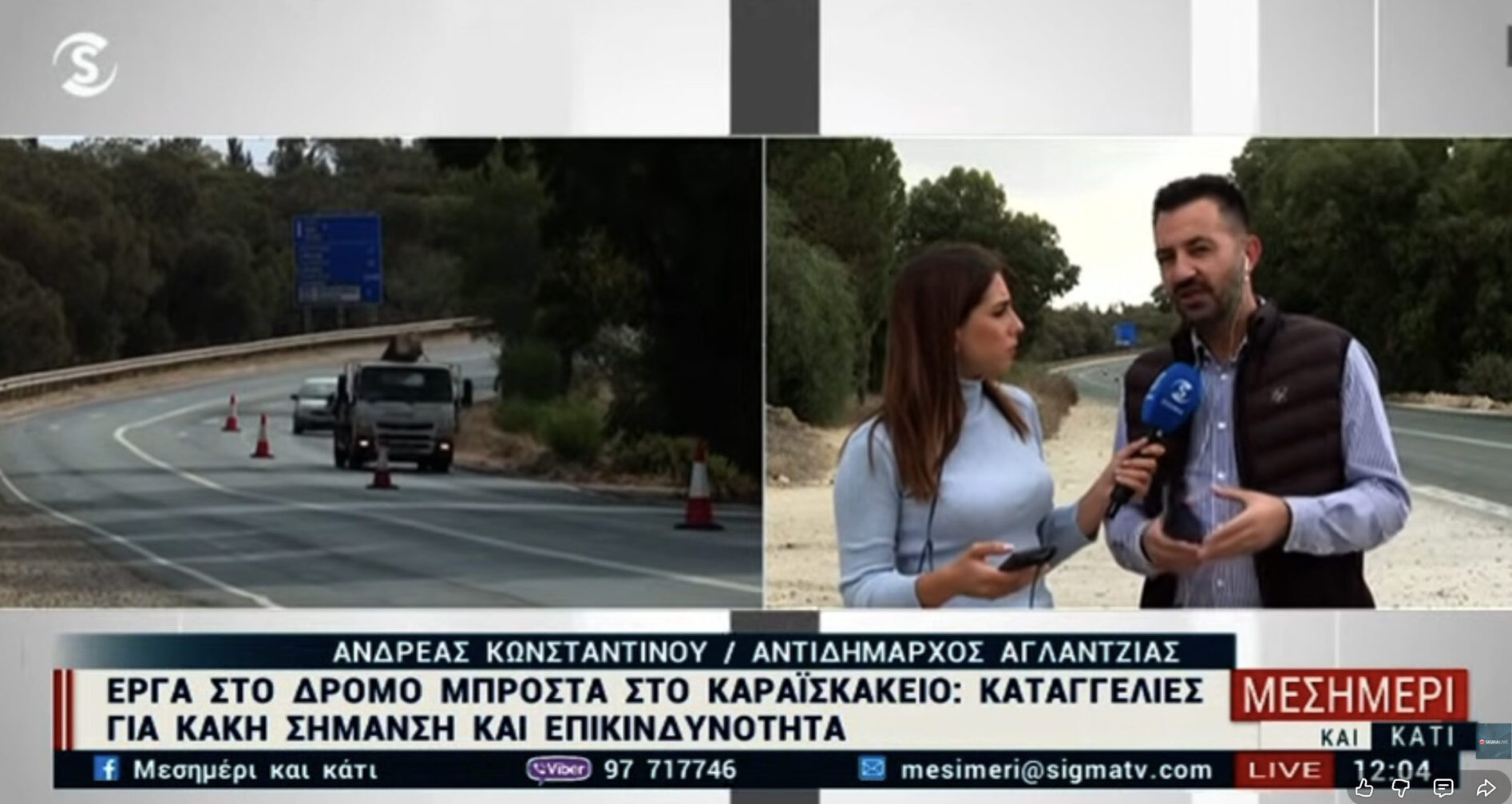 Σήμερα παρενέβηκα στην εκπομπή «Μεσημέρι και Κάτι» του Σίγμα για να ενημερώσω σχετικά με τα προβλήματα επικινδυνότητας στον δρόμο Αγλαντζιάς–Γερίου και τις άμεσες ενέργειες που προχωρούν στις 26/11.