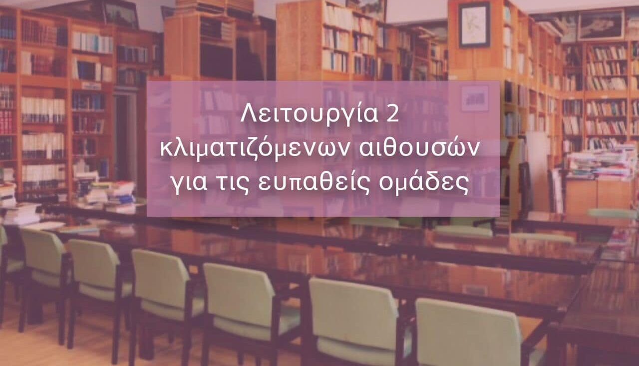 Ανταποκρινόμενος στις ιδιαίτερα υψηλές θερμοκρασίες, λήφθηκε η πρωτοβουλία για τη λειτουργία κλιματιζόμενων χώρων με στόχο τη φιλοξενία και ανακούφιση των δημοτών.