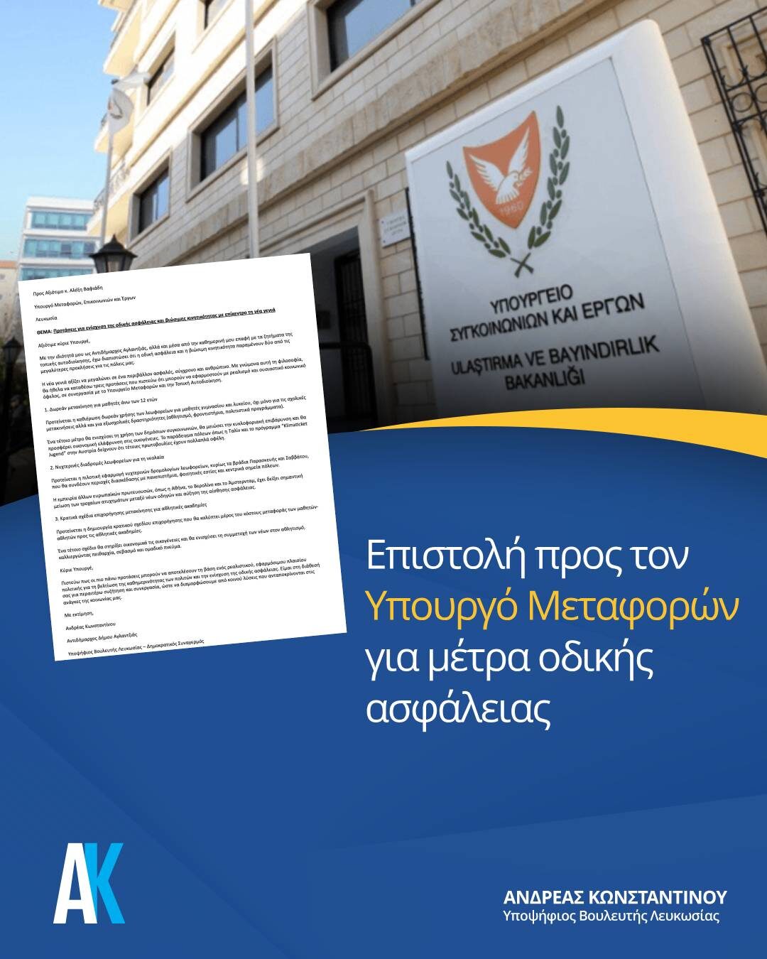 ✍️ Με επιστολή μου προς τον Υπουργό Μεταφορών κατέθεσα τρεις ρεαλιστικές προτάσεις που μπορούν να βελτιώσουν άμεσα την καθημερινότητα των πολιτών, με επίκεντρο τη νέα γενιά: